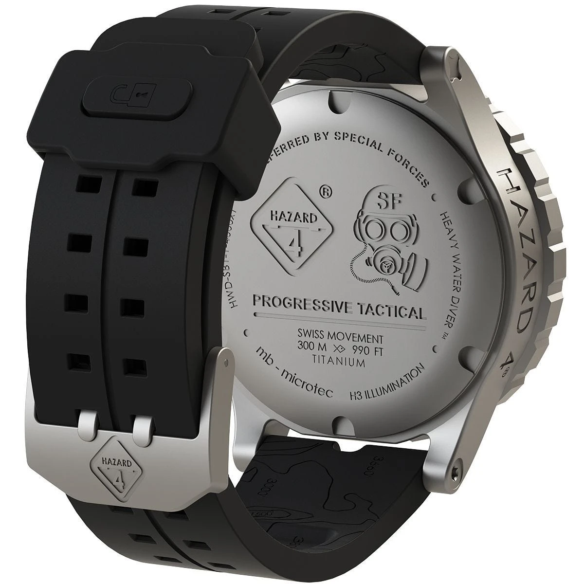 With water resistance of up to 300 meters and highly visible 3D military stencil-cut numerals, the Heavy Water Diver Titanium Tritium Watch from Hazard 4 comes with hypoallergenic titanium case, scratch-resistant sapphire crystal glass and custom T.P.R. band. Additionally, this highly unique action watch features self-contained ever glow tritium-vial lamps which are self-powered and don’t require charging. Continuous glow (night or day) is achieved by combining hydrogen-3 gas (tritium/H3), glass tubes, and phosphors into self-contained mini-lamps which don’t fade overnight and are feather-light. With technology usually used only for critical applications, the Heavy Water Diver Titanium Tritium Watch from Hazard 4 represents great value for any serious adventure lover.