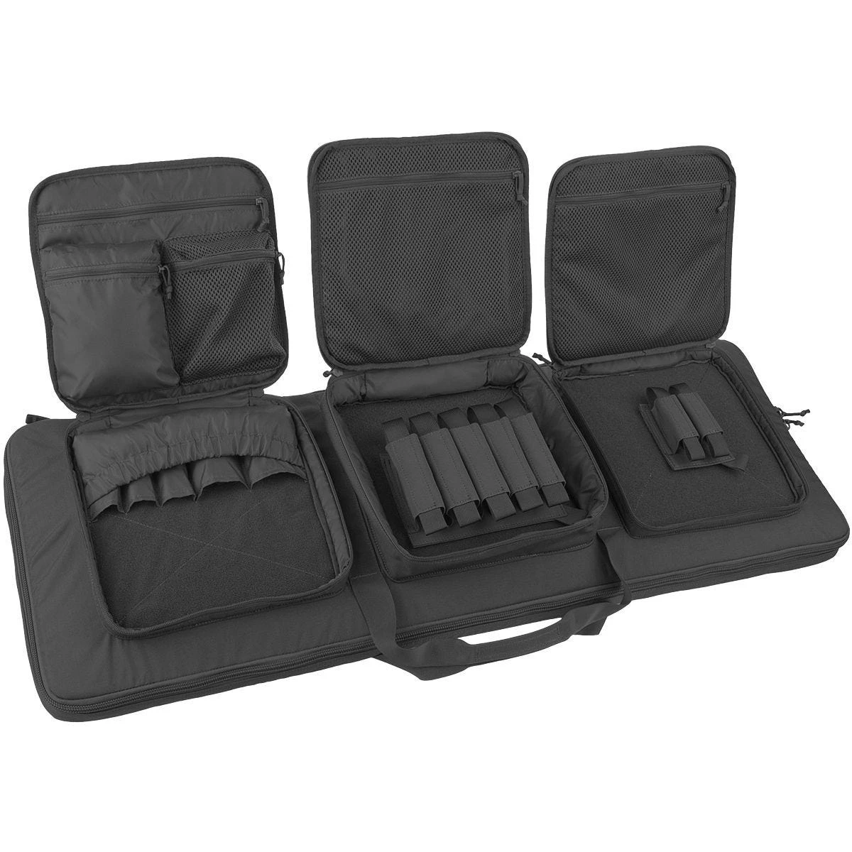 zippered mesh pockets, removable double handgun magazine and quadruple