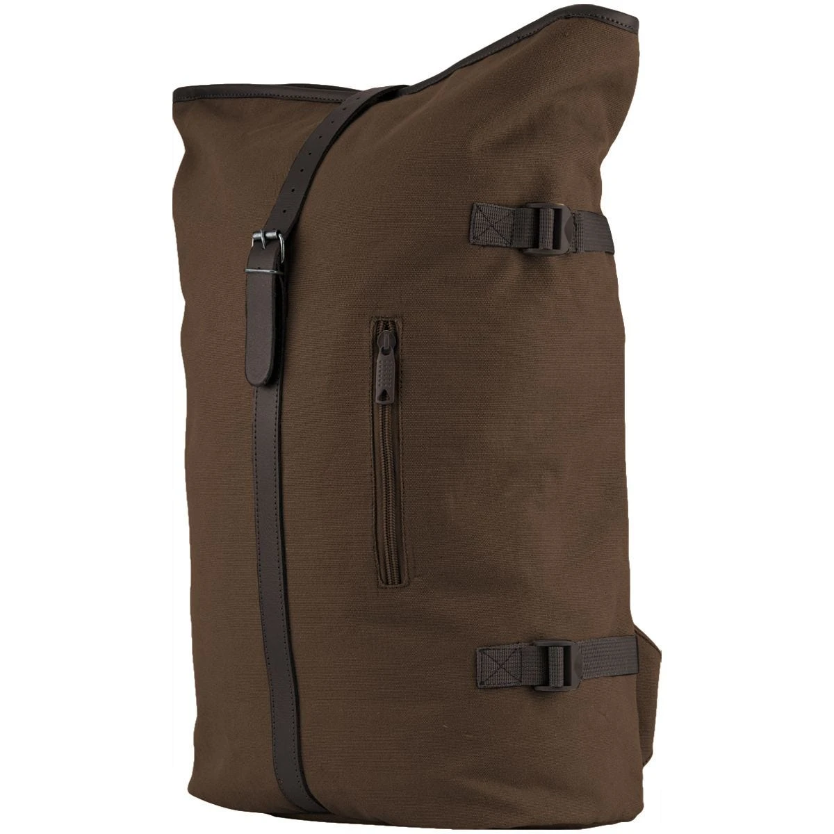 - Main loading compartment secured with zip and over the top leather strap with buckle closure