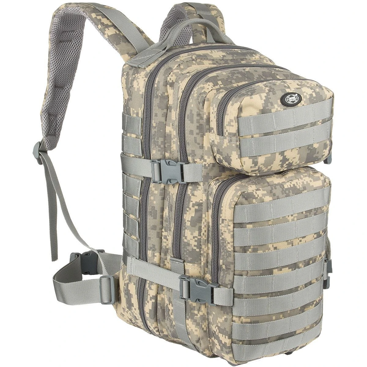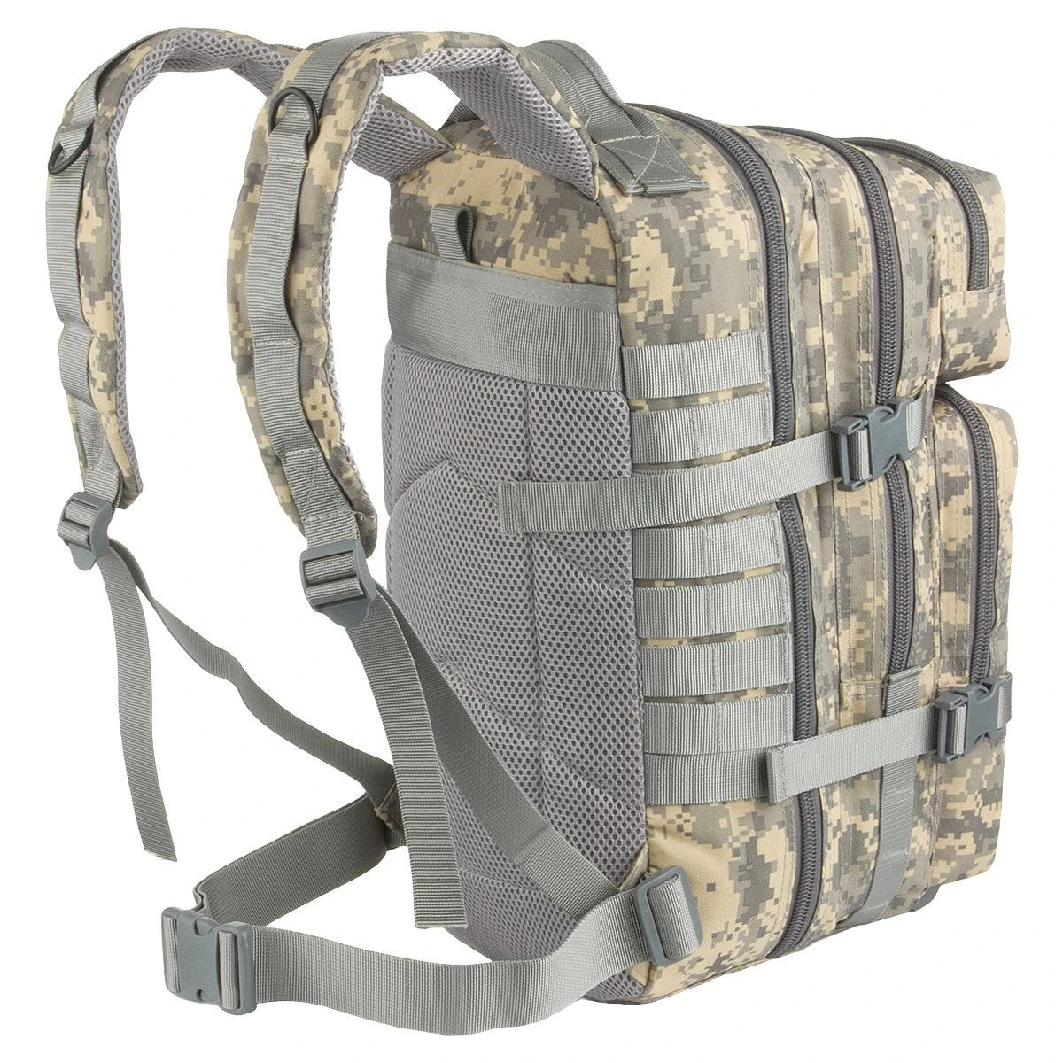 polyester MOLLE straps all-round, and loops and D-rings on shoulder