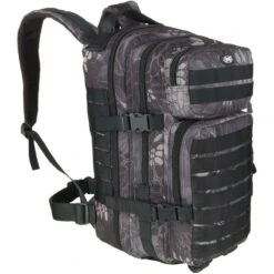 polyester MOLLE straps all-round, and loops and D-rings on shoulder
