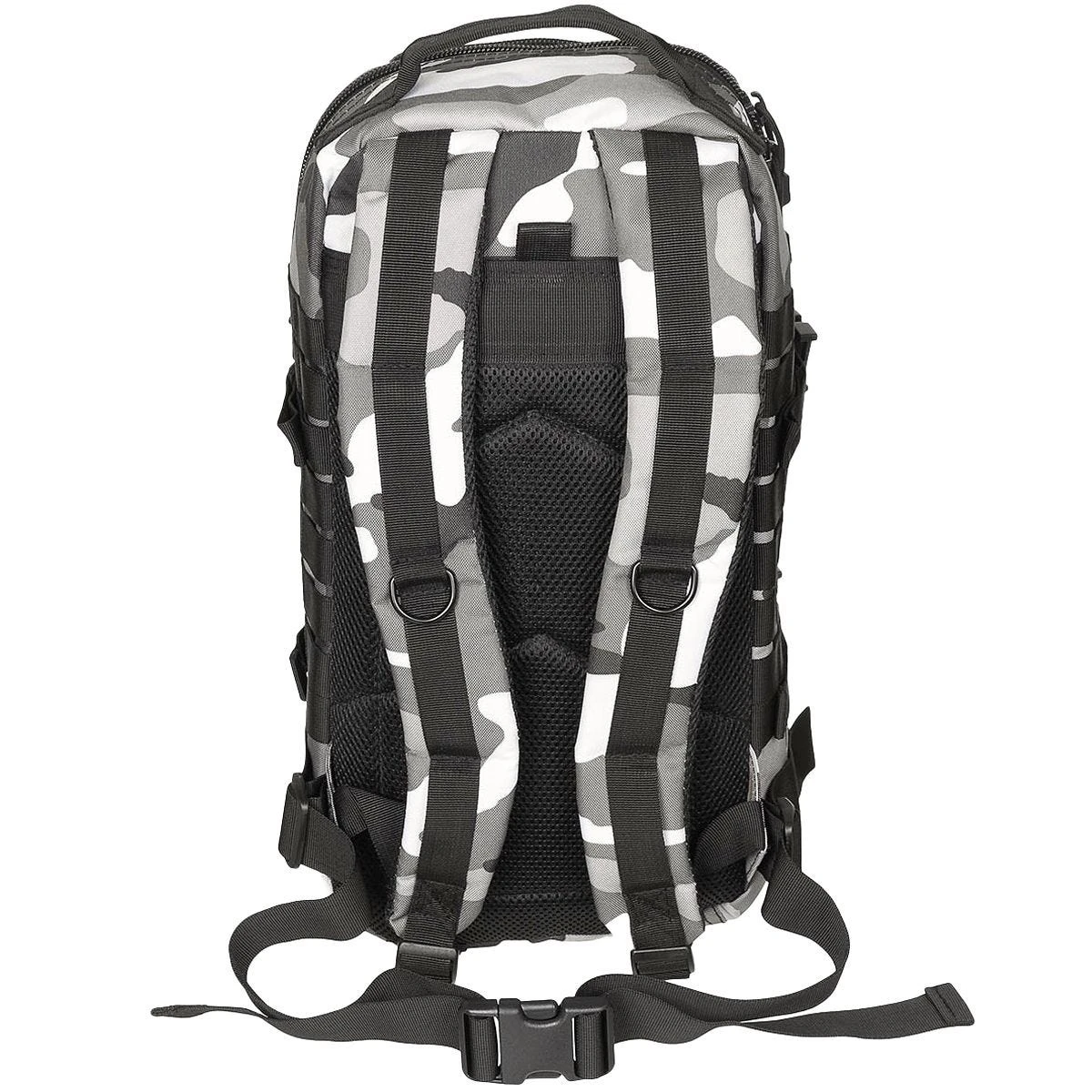 polyester MOLLE straps all-round, and loops and D-rings on shoulder