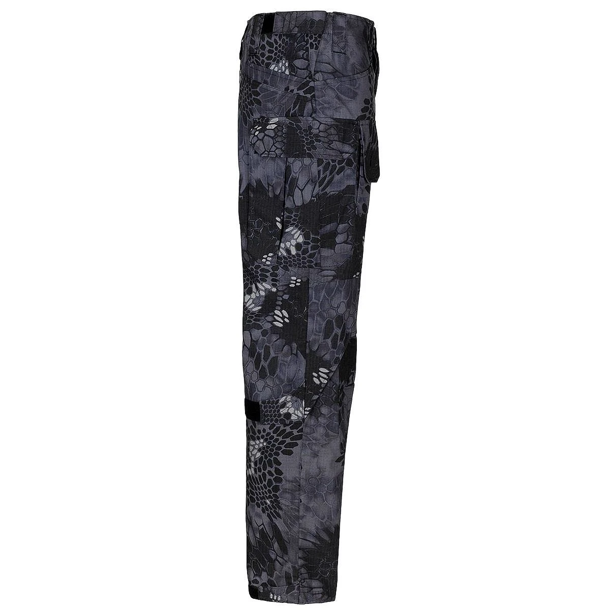 - Hook-and-loop adjustments at knees, waist and leg cuffs