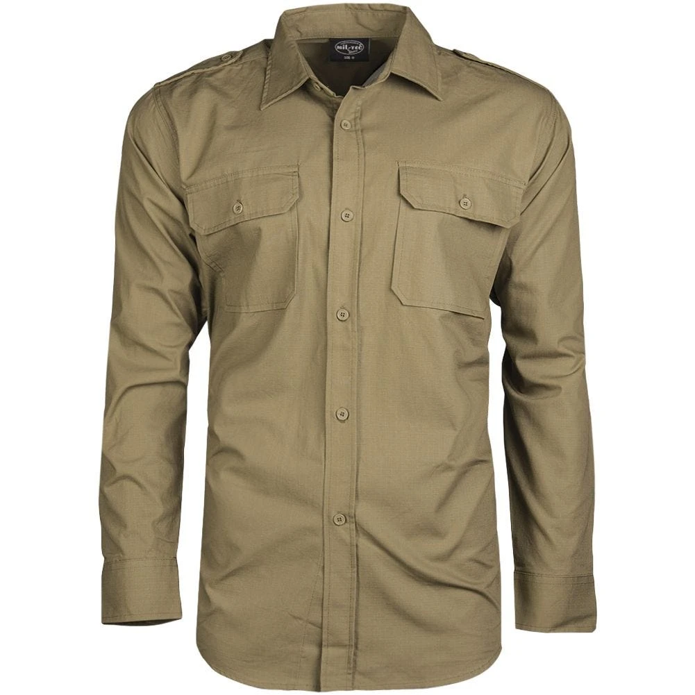 fastener, two chest flapped pockets and shoulder epaulettes. Ideal for