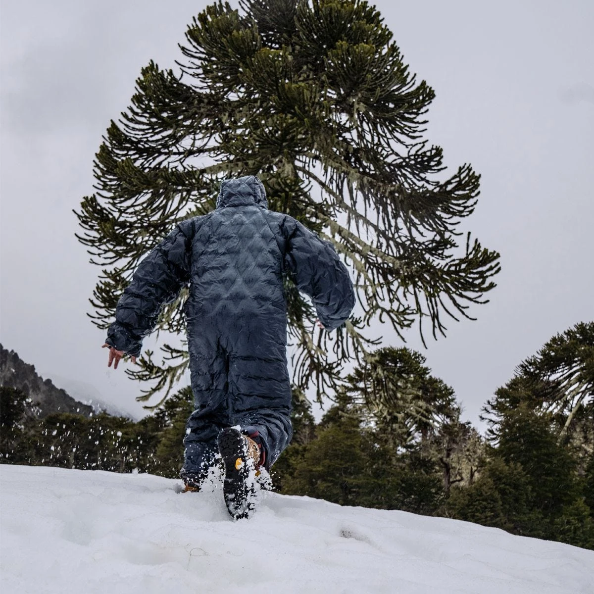 Selk’bag Nomad Blue sleeping bag suit has a temperature rating suitable for use outdoors in the UK any time of year. With 100% post-consumer recycled Primaloft insulation and a water-resistant coating, it makes it the most versatile sleeping bag onesie outdoors enthusiasts can wear. The non-detachable hood is insulated and adjustable for the best fit, keeping you warm and comfortable. The integrated face mask serves to keep your face warm and protected from the elements when you need it. A quick, practical dual zipper design allows easy access to your pockets or fly. The kangaroo pocket allows you to bring your hands to rest and stash anything you need handily. And the cargo pocket is perfect for stashing a phone or whatever needs to be handy. Elastic hand openings help you to bring your hands in and out of the bag quickly and effortlessly. Leg vents with a zipper closure that allow you to regulate temperature for times when you get too warm. The removable zip-off booties allow you to wear your own shoes when you’re out and will keep you warm and comfortable when you’re sleeping. It’s recommended to size up as the Selk’bag Nomad Blue model is more of a snug fit as it contains thick padding insulation.