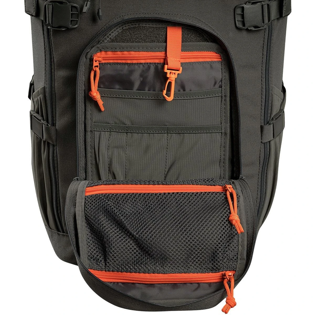 antenna/hydration pass-through ports - Front utility pocket with two-way zipper, external 7×4 MOLLE system,