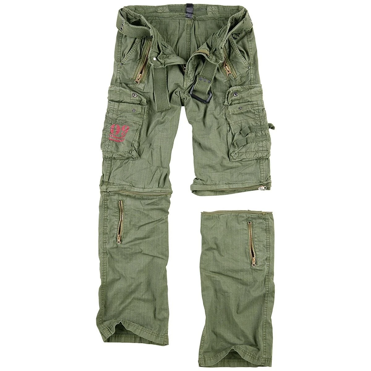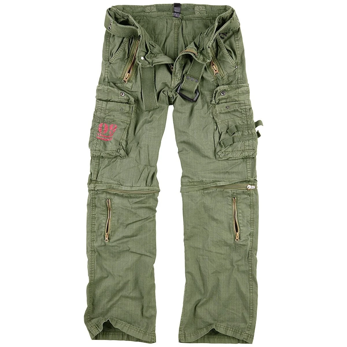 - Zippered pockets over the hand pockets and at the lower legs