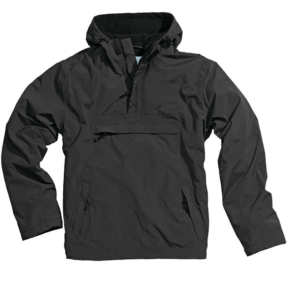 breathable, windproof and water repellent 100% nylon. It features a hood