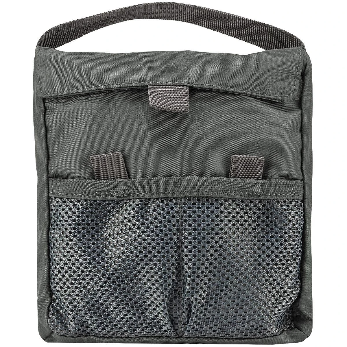 hook-and-loop side pockets plus front and bottom MOLLE compatible panels